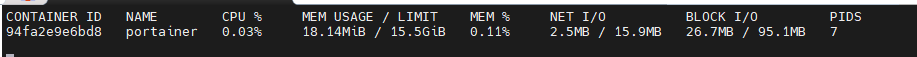 Jika hanya ingin memantau satu container saja, gunakan container ID atau nama container.